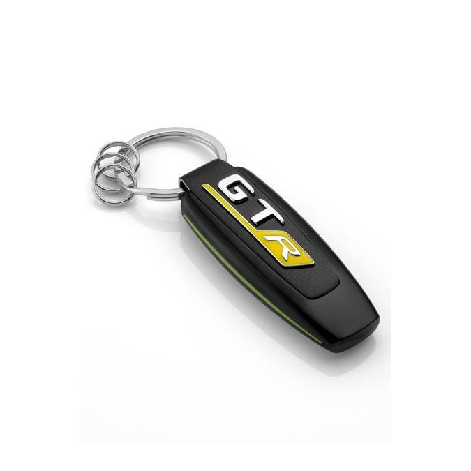 Sportlich-schick präsentiert sich der Mercedes-AMG GT R Schlüsselanhänger Typo. Der Schlüsselanhänger im Carbon-Look sorgt zusammen mit der originalen Heckdeckeltypographie „GT R“ auf der Vorderseite, dem silberfarbenen AMG Logo auf der Rückseite des Anhängers sowie dem umlaufend grünen Akzent für ein ganz besonderes Design. Und auch in puncto Funktionalität lässt der Schlüsselanhänger nicht zu wünschen übrig. So stehen neben dem Flachspaltring drei zusätzliche Minispaltringe zur Verfügung, die ein schnelles Wechseln und Entnehmen einzelner Schlüssel ermöglichen.