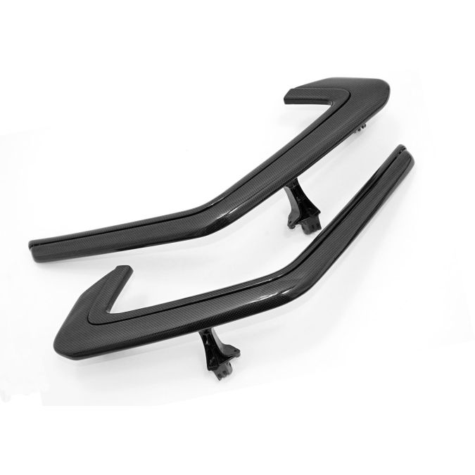 Carbon fiber interior 4-piece interior door handles for the door panels (left and right). Will fit both left hand drive cars and right hand drive cars.