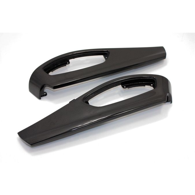 Carbon fiber interior trim panels around seat adjusting at sides of front seats (left and right). Will fit both left hand drive cars and right hand drive cars.