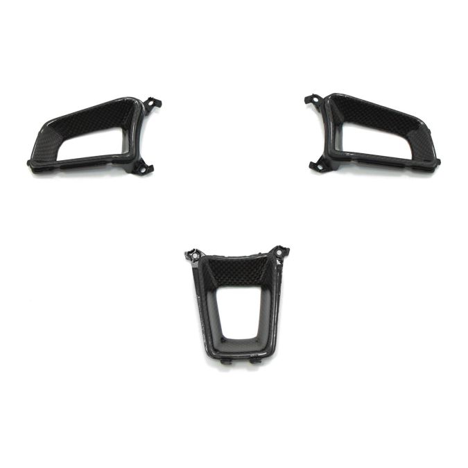 Carbon fiber 3 front inserts for the sport design steering wheel arm, for vehicles without multifunction switches. Will fit both left hand drive cars and right hand drive cars.