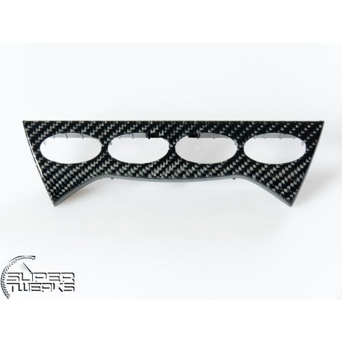 Carbon fiber interior Batwing Under Storage Box (4 switch holes). Batwing under the storage box, climate control or CD-Compartment! With four holes for switches. Will fit both left hand drive cars and right hand drive cars.