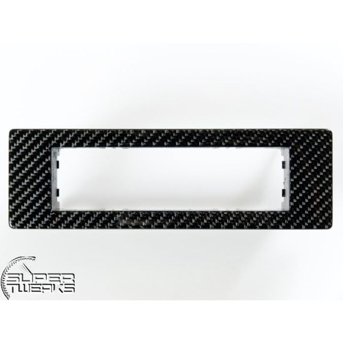 Carbon fiber interior CD Compartment Frame. Frame for the CD-Box in the console, under PCM or radio. Will fit both left hand drive cars and right hand drive cars.