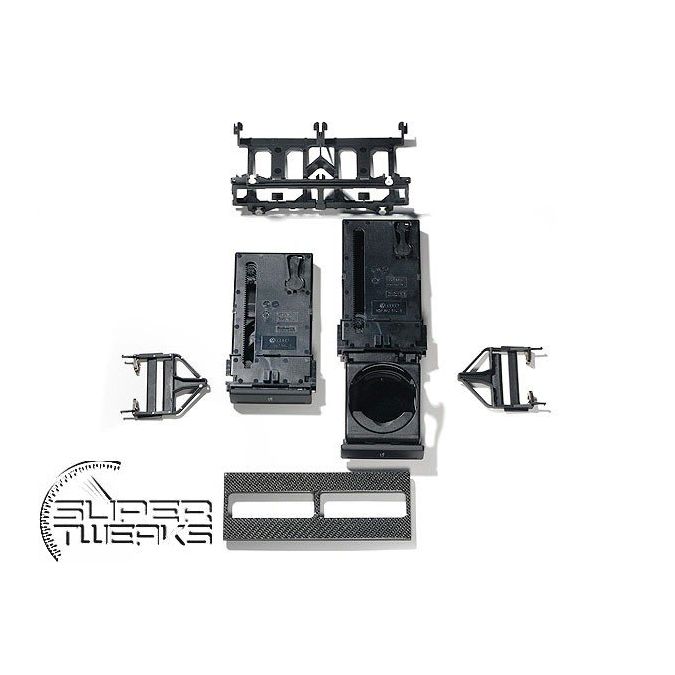 Carbon fiber interior Complete Cupholder Assembly (including cover/frame). Complete cupholder assembly for the center (above the radio unit), including the cover/frame. Will fit both left hand drive cars and right hand drive cars.