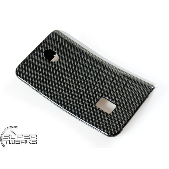 Carbon fiber interior Fuse Box Cover. Lid/Cover for the fuse-box in the floor room (drivers side). Will fit both left hand drive cars and right hand drive cars.
