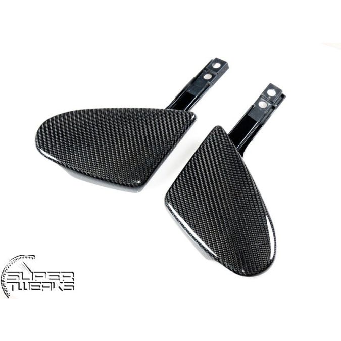 Carbon fiber interior Seat Articular Covers (left and right). Covers for the seat articular, connection between the seat and the seat back. Will fit both left hand drive cars and right hand drive cars.