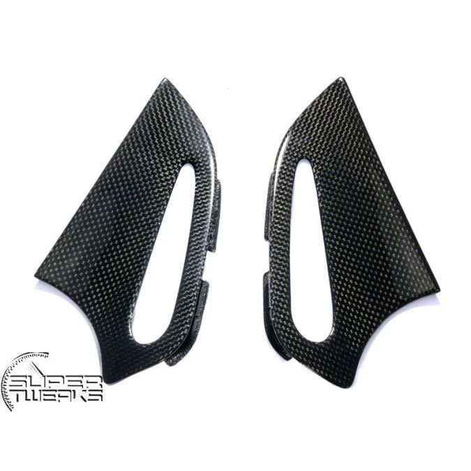 These carbon parts are direct replacements for the original parts. The finish of the carbon fibre is very high quality. Produced in Germany and we guarantee that all our parts will fit as per the original parts and are a direct replacement for the originals.