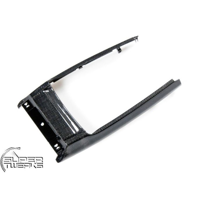 Carbon fiber interior console/shifter surround cover for manual cars, located on the centre console. Will fit both left hand drive cars and right hand drive cars.