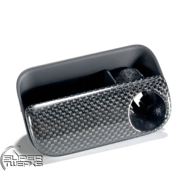 Carbon fiber interior glove box handle. Handle for the glove box under airbag passengers side. Will fit both left hand drive cars and right hand drive cars.