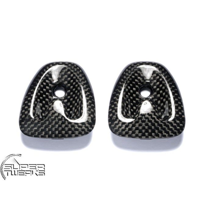 Carbon fiber interior 2x seat coat hooks, supplied as a pair for the driver and passenger seats. Coat hooks located behind the seats. Will fit both left hand drive cars and right hand drive cars.