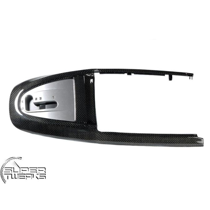 Carbon fiber interior cover on the centre console, surround for the shifter. For cars with automatic transmission/tiptronic. Will fit both left hand drive cars and right hand drive cars.