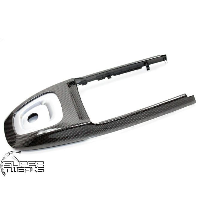Carbon fiber interior console/shifter surround cover for PDK/Tiptronic cars, located on the centre console. Will fit both left hand drive cars and right hand drive cars.