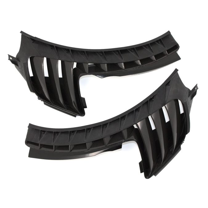 Carbon fiber complete exterior fender air intake grills (left and right), supplied complete with OEM installation kit. Will fit both left hand drive cars and right hand drive cars.