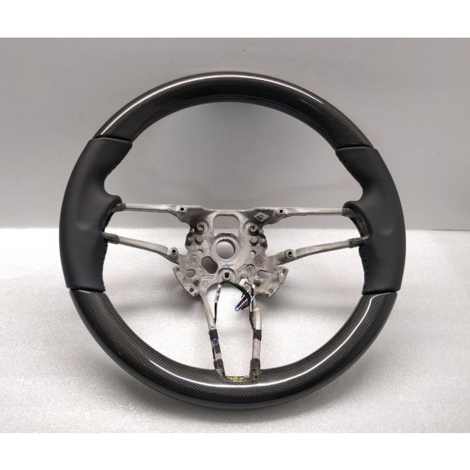 Enhance the look and feel of your Porsche with this carbon & black leather heated steering wheel. Compatible with various Porsche models including Macan, Panamera GTS, and Cayenne 958. This high-quality wheel is in new, unused condition and does not include trim, buttons, or airbag. Upgrade your driving experience today!