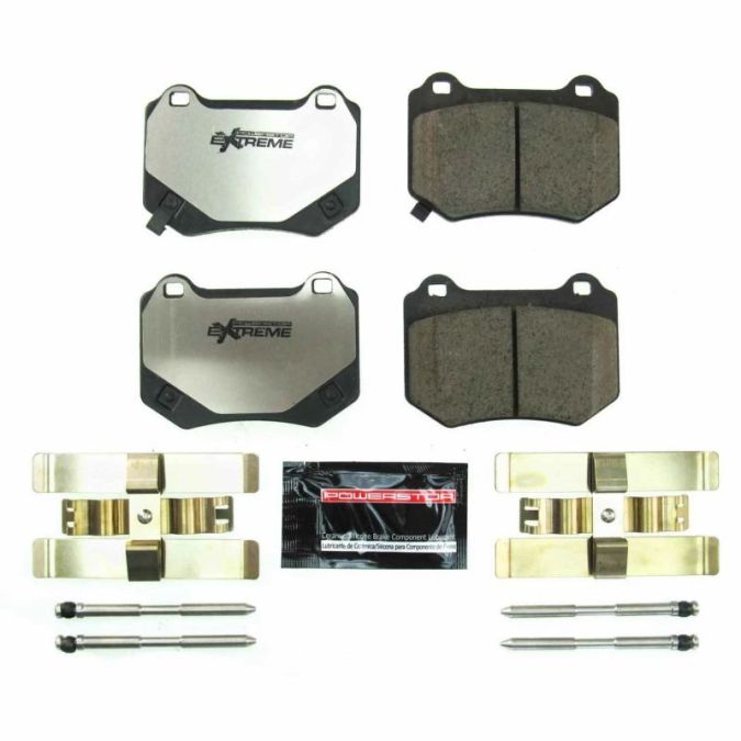 The Power Stop Z26 Street Warrior ceramic brake pads are designed as an upgrade over stock brakes to reduce brake dust & eliminate noise on muscle cars and performance vehicles. These brake pads are made with a low-dust ceramic formula, infused with carbon-fiber to strengthen the compound and provide extreme stopping power. Premium stainless-steel hardware along with ceramic brake lubricant is included with the Z26 brake pads making it easier to complete your brake job. Use Z26 Street Warrior ceramic brake pads to give your muscle car or performance vehicle the extreme stopping power it deserves.
