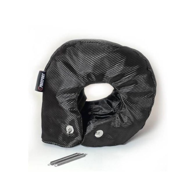 Fitted exhaust heat blanket reduces turbo lag and increases turbo spool time while significantly reducing under hood temperatures. An excellent heat barrier protecting the hood, hoses, and painted surfaces from residual heat damage.The Prosport turbo blanket comes with stainless steel anchoring hooks incorporated in the shield along with free speed spring clips to make securing the blanket to your turbo fast and easy.