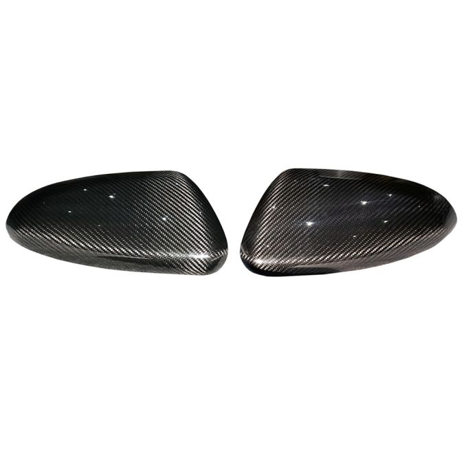 Rexpeed dry carbon fiber mirror cap replacements for the GR86 or BRZ installs directly over your factory mirrors with paper-thin 3M adhesive. Option of gloss or matte finish for carbon weave, or forged carbon finish.