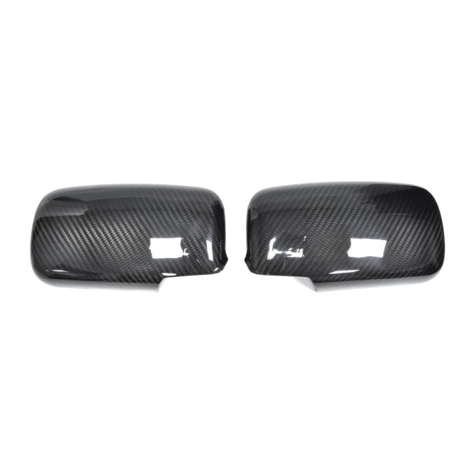 Rexpeed dry carbon fiber mirror covers for Evo 7/8/9 installs directly over your factory mirrors with paper-thin 3M adhesive. Gloss finish.