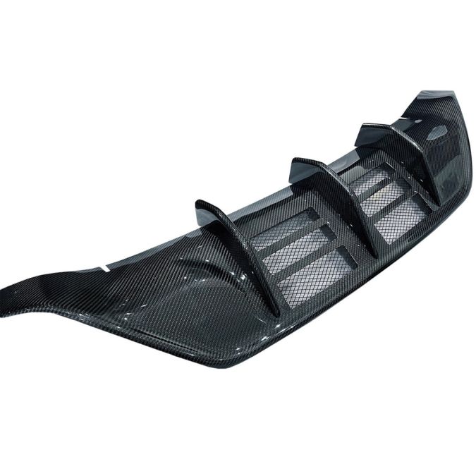 The Rexpeed R35 GTR Rear Diffuser is crafted from high-quality twill weave carbon fiber with a durable clear coat finish, offering an aggressive aesthetic that complements the GTR's design. This lightweight diffuser bolts onto the factory rear bumper, enhancing both styling and downforce by optimizing airflow beneath the car. The carbon fiber construction ensures superior stiffness, strength, and durability compared to traditional composites. Designed for ease of installation, the kit includes adhesives and two bolts, although minor trimming of the factory rear valence is required. By smoothing and directing high-speed airflow to the low-pressure vacuum at the rear of the car, the diffuser improves aerodynamic efficiency and works seamlessly with other performance components like rear wings.