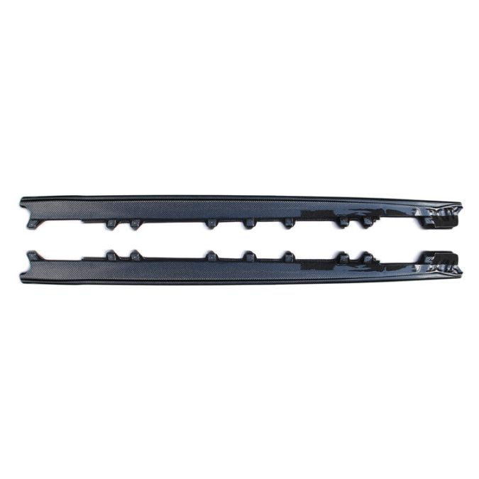 Rexpeed carbon fiber V2 Side Skirt Extensions for the 2020+ Supra GR models. The V2 design is also called the 'Artisan Style.' The extensions are 30mm lower than factory. Includes both sides and all necessary hardware.