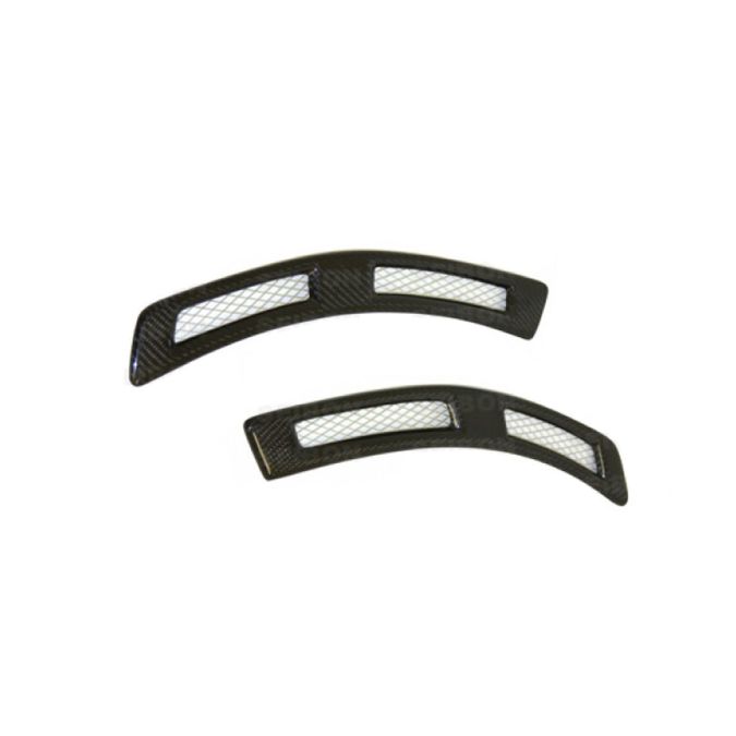 Seibon carbon fiber fender ducts for the 2008-2015 Evo X models. Includes both LH and RH vents with a glossy carbon fiber finish. Part number FD0809MITEVOX.