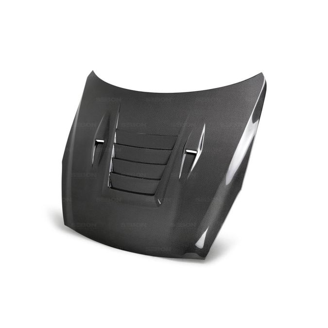 Seibon carbon fiber DS style hood for 2009-2016 Nissan R35 GTR. This hood has a glossy carbon fiber finish. Part number HD0910NSGTR-DS. Does not fit 2017+ models. Please read all Seibon terms and conditions regarding hood pins, shipping, hood dampers and use.