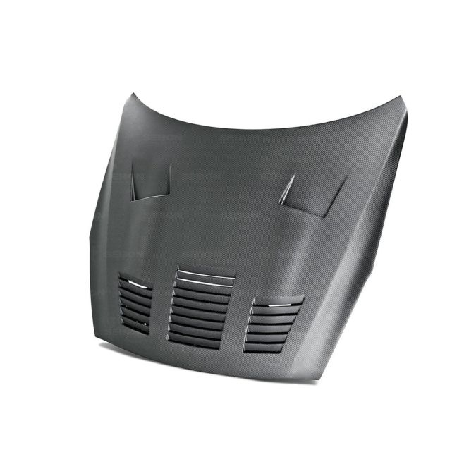 Seibon dry carbon fiber GT style hood for 2009-2016 Nissan R35 GTR. Does not fit 2017+ models. This hood is ultra lightweight with a matte dry carbon fiber finish. Part number HD0910NSGTR-GT-DRY. Please read all Seibon terms and conditions regarding hood pins, shipping, hood dampers and use.