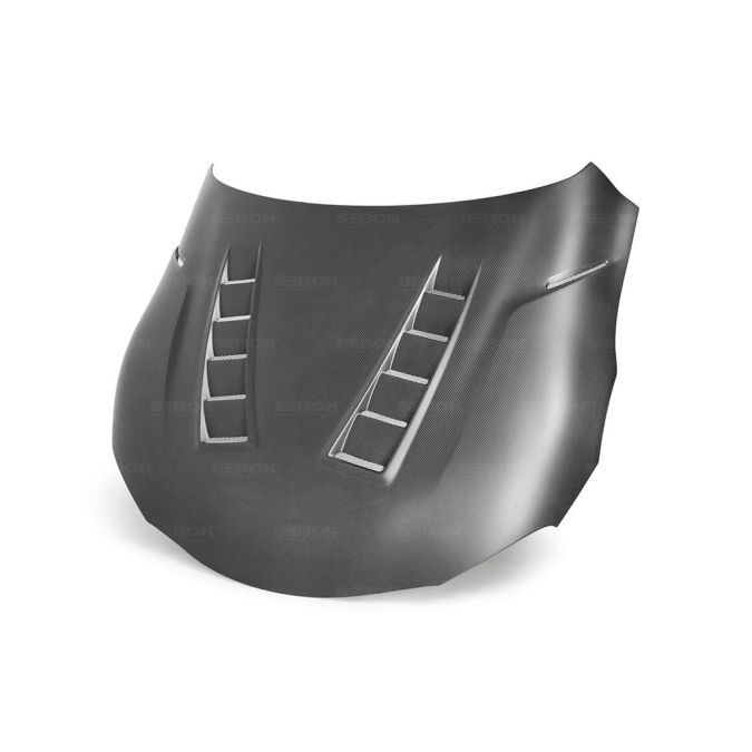 Seibon dry carbon fiber TS style hood for 2020-2021 Toyota Supra GR. This hood is ultra lightweight with a matte dry carbon fiber finish. Part number HD20TYSUP-TS-DRY. Please read all Seibon terms and conditions regarding hood pins, shipping, hood dampers and use.
