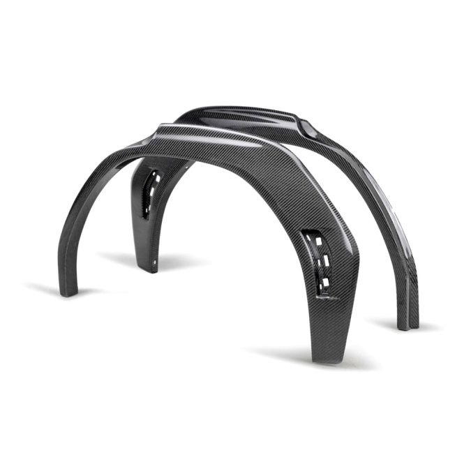 Seibon carbon fiber rear fender garnishes for 2022 Subaru WRX. These have a glossy carbon fiber finish and includes replacement garnishes for the left and right rear fenders. Also called fender flares or fender caps. Part number RFT22SBIMP.