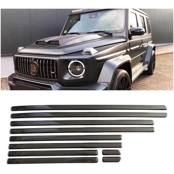 Designed with precision and crafted from high-quality carbon fiber, these mouldings provide a sleek and aggressive look while offering added protection to your car’s side body panels. Each set includes 10 pieces, ensuring a comprehensive upgrade for your vehicle’s appearance.