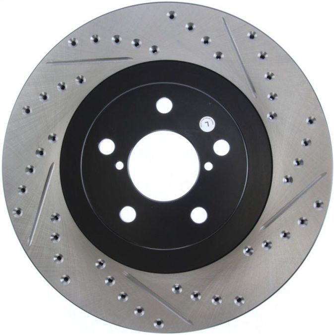 StopTech Drilled and Slotted Sport Rotors are 1-piece direct replacement brake discs for factory brake systems and stock calipers that look great behind your wheels – and offer significantly improved braking performance. The unique cross-drilling and slotting aids with heat and brake dust dispersal, prevents glazing of the pads, adds bite and improves wet and dry braking performance. Built to last, the black e-coating provides protection from corrosion and the high carbon metallurgy (in most applications) offers quieter operation, better crack resistance and increased performance.