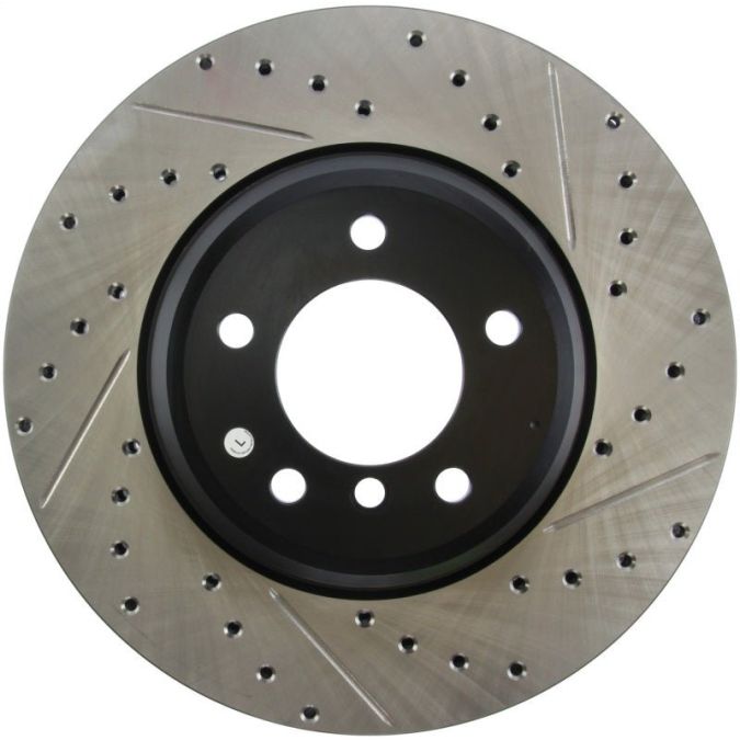 StopTech Drilled and Slotted Sport Rotors are 1-piece direct replacement brake discs for factory brake systems and stock calipers that look great behind your wheels – and offer significantly improved braking performance. The unique cross-drilling and slotting aids with heat and brake dust dispersal, prevents glazing of the pads, adds bite and improves wet and dry braking performance. Built to last, the black e-coating provides protection from corrosion and the high carbon metallurgy (in most applications) offers quieter operation, better crack resistance and increased performance.
