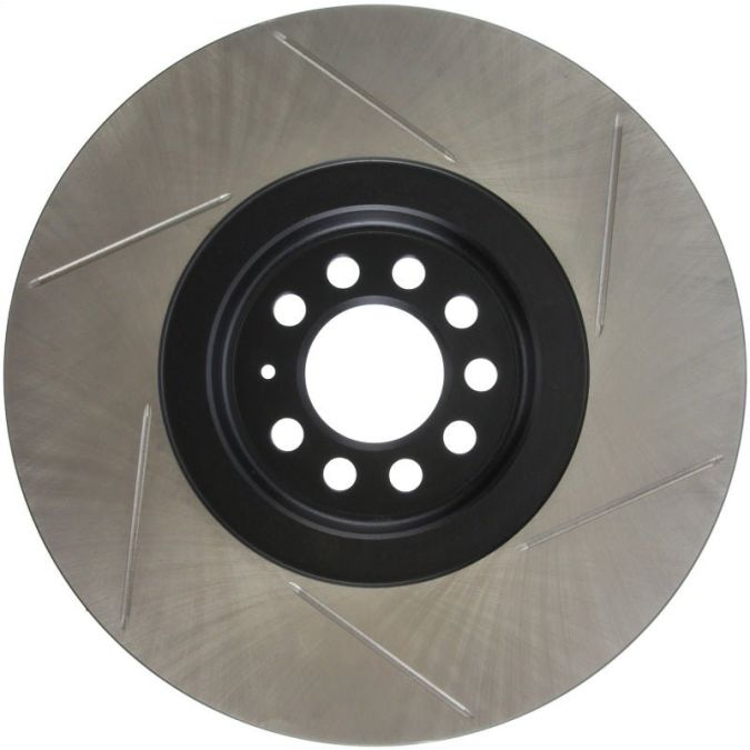 StopTech Slotted Sport Rotors are 1-piece direct replacement brake discs for factory brake systems and stock calipers that look great behind your wheels – and offer significantly improved braking performance. The unique slotting aids with heat and brake dust dispersal, prevents glazing of the pads, adds bite and improves wet and dry braking performance. Built to last, the black e-coating provides protection from corrosion and the high carbon metallurgy (in most applications) offers quieter operation, better crack resistance and increased performance.