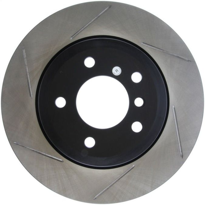 StopTech Slotted Sport Rotors are 1-piece direct replacement brake discs for factory brake systems and stock calipers that look great behind your wheels – and offer significantly improved braking performance. The unique slotting aids with heat and brake dust dispersal, prevents glazing of the pads, adds bite and improves wet and dry braking performance. Built to last, the black e-coating provides protection from corrosion and the high carbon metallurgy (in most applications) offers quieter operation, better crack resistance and increased performance.