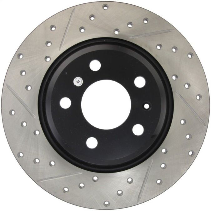 StopTech Drilled and Slotted Sport Rotors are 1-piece direct replacement brake discs for factory brake systems and stock calipers that look great behind your wheels – and offer significantly improved braking performance. The unique cross-drilling and slotting aids with heat and brake dust dispersal, prevents glazing of the pads, adds bite and improves wet and dry braking performance. Built to last, the black e-coating provides protection from corrosion and the high carbon metallurgy (in most applications) offers quieter operation, better crack resistance and increased performance.