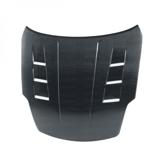 Upgrade your 2002-2006 Nissan 350Z with a TS-style carbon fiber hood from Seibon Carbon. Hand-crafted with precision and durability in mind, this hood features a consistent weave pattern and a glossy clear coat finish. Shed unnecessary weight without sacrificing style, and enjoy peace of mind knowing that Seibon Carbon stands firmly behind their products. Perfect for professional drivers and car enthusiasts alike. Get yours now at [URL].