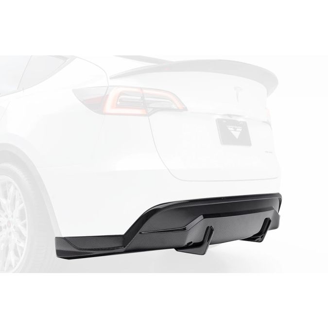 Enhance the aerodynamic efficiency of your Tesla Model Y with Vorsteiner's aero rear diffuser. Since EVs rely on batteries with limited capacity and range, aerodynamics are crucial. By reducing wind resistance and aerodynamic drag, this diffuser improves efficiency and extends the range of your Model Y, along with improving grip.